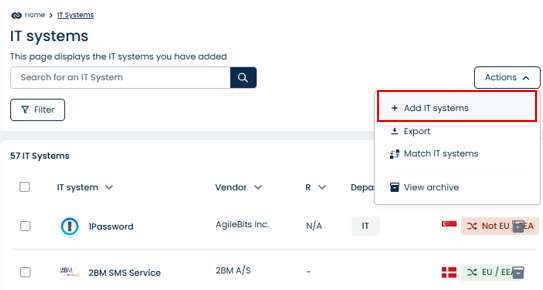 - Go to IT Systems > Actions > Add IT System