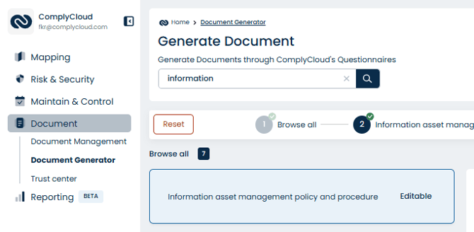 In the Document Generator, you can easily create your ISMS documentation through interactive questionnaires.